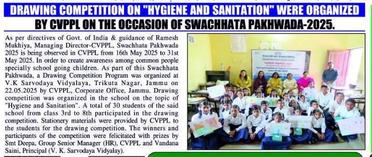 सीवीपीपीएल ने "स्वच्छता और सफाई" पर चित्रकला प्रतियोगिता का आयोजन किया