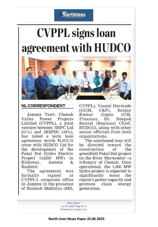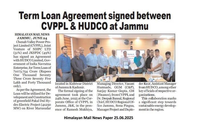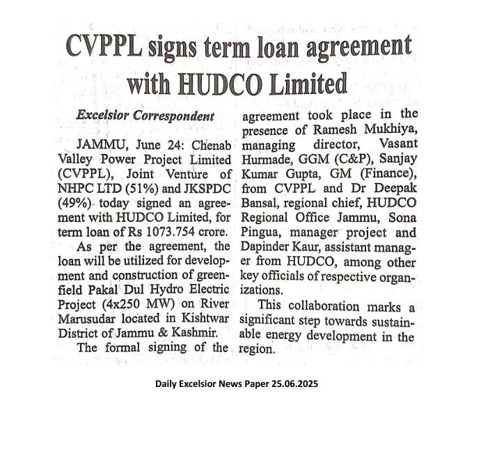 जम्मू में सीवीपीपीएल और हुडको के बीच सावधि ऋण समझौते पर हस्ताक्षर किए गए
