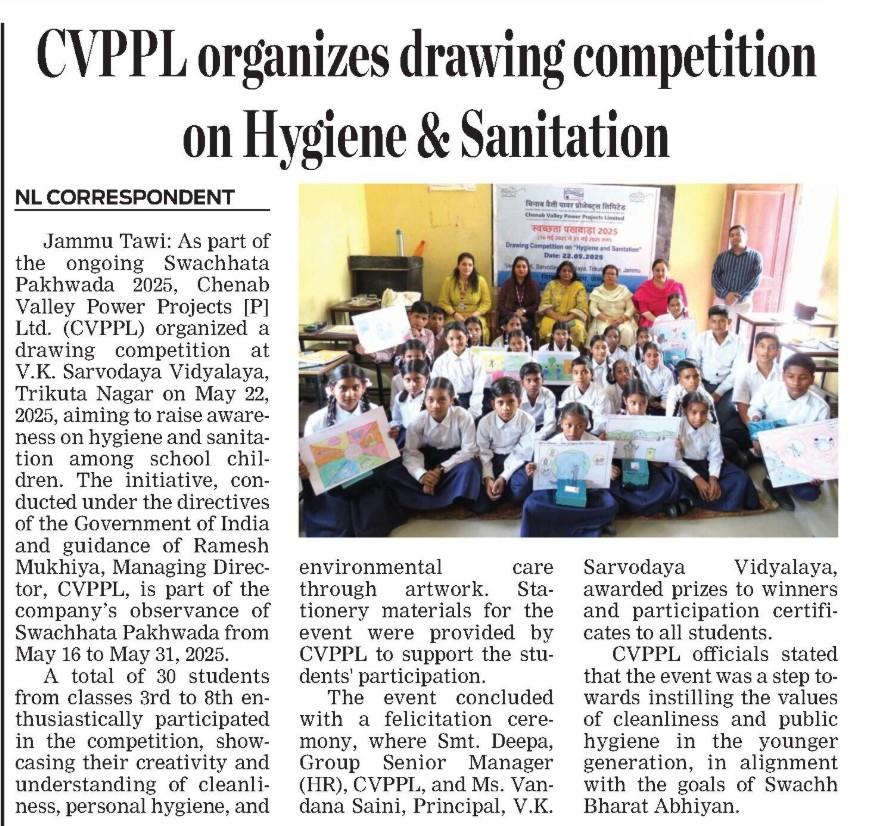 सीवीपीपीएल ने "स्वच्छता और सफाई" पर चित्रकला प्रतियोगिता का आयोजन किया