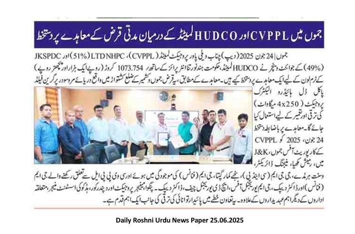 जम्मू में सीवीपीपीएल और हुडको के बीच सावधि ऋण समझौते पर हस्ताक्षर किए गए