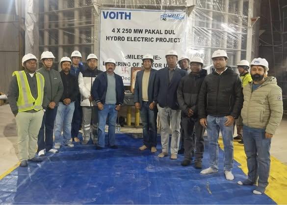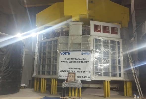 In a major step towards the completion of 1000 MW (250 MW x 4 units) Pakal Dul HE Project in Kishtwar, presently under construction by CVPPL (A Joint Venture of NHPC Limited and JKSPDC), the Stator in Unit - IV has been successfully lowered today on 15.12.2025 in the presence of all Senior Officers of Pakal Dul HE Project and M/s Voith (Contractor for E&M Package). Meanwhile, the assembly of Unit-II rotor is also complete and shall be lowered very soon.